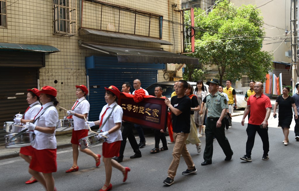 仪式后,杨军、李锋一行陪同二等功、三等功获得者刘帅家人一起将喜报、“二等功臣之家”的光荣牌匾送到其龙泉街道桠枝塘社区的父母家中。一路上报喜团敲锣打鼓,闻讯而来的附近居民纷纷称赞刘帅为芦淞人民争了光,也为其父母培养出这样一个优秀的儿子连连点赞。