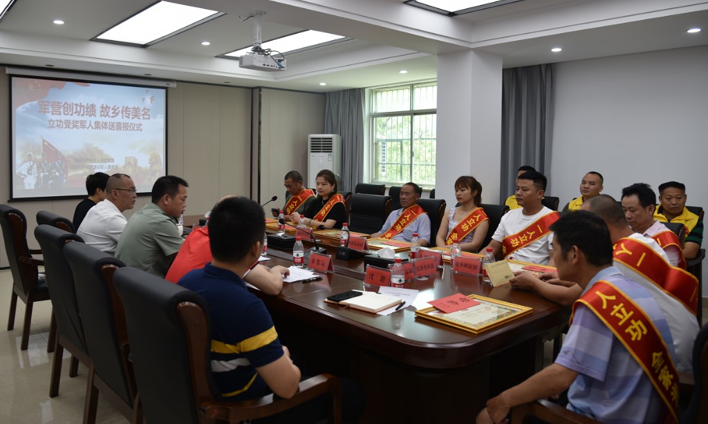 “军营创功绩,故乡传美名!” 6月23日上午9点30分,芦淞区退役军人事务局在局机关会议室为芦淞籍立功受奖军人家属举行集体送喜报仪式,区人武部部长杨军、区退役军人事务局局长李锋、7名立功受奖军人的家属、各街道(镇)退役军人服务站站长、芦淞区退役军人志愿服务队部分志愿者及区退役军人事务局工作人员40余人参加仪式。