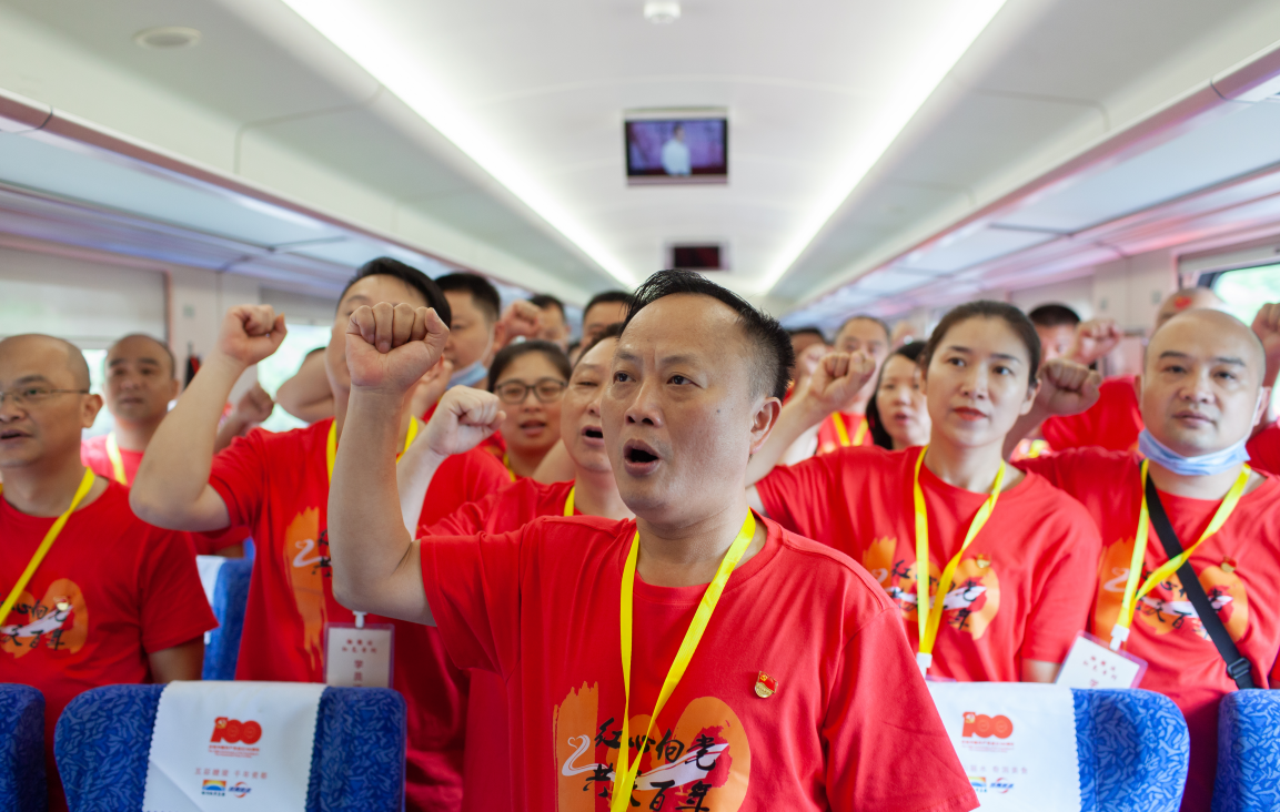 为庆祝中国共产党成立100周年,扎实开展党史学习教育,7月2日,芦淞区市场监管局组织全局干部职工共85人乘坐湘赣边红色专列赴茶陵开展革命传统教育活动。