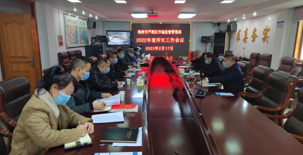 2月17日上午,区市场监督管理局召开“发愤图强 真抓实干奋力谱写芦淞市监崭新篇章”为主题的2022年芦淞区市监所所长会议,会议由区市场监督管理局党委书记、局长夏志毅主持,全体班子成员及各市监所负责人参加会议。