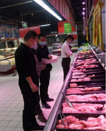 为及时了解疫情阶段的日常生活用品的价格及经营状况,4月22日,区市场监督管理局党委委员、副局长陶海滨带队到辖区农贸市场、超市开展日常生活用品价格监督检查,重点走访了贺嘉土农贸市场、中南食品大市场、家乐福超市等,对市场经营猪肉、蛋禽类、蔬菜的商户进行了检查,并且要求经营者严格依法明码标价,不哄抬价格,不囤积居奇,履行保供稳价社会责任,不得扰乱正常的市场价格秩序。