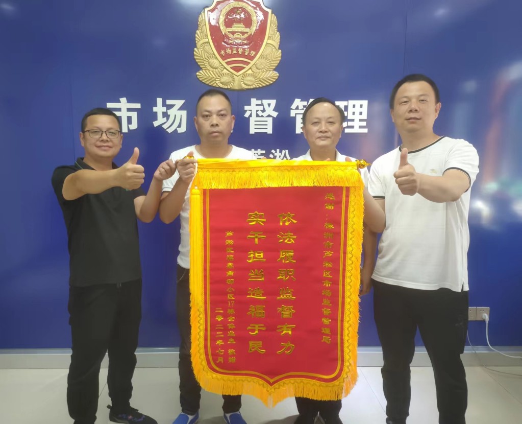 7月25日下午,芦淞区福鑫南郡的小区居民代表们将一面写着“依法履职监督有力,实干担当造福于民”的锦旗送到了芦淞区市场监督管理局局长夏志毅手中。烈日炎炎、暑气逼人,是什么原因让居民代表们冒着39度的高温也要将这面寄托着赞许和认可的锦旗亲自送上门?原来事情的经过是这样: