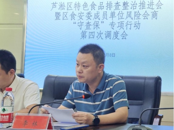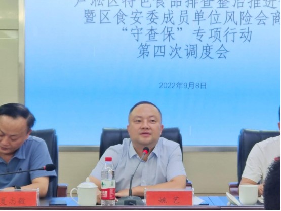 为贯彻落实省市食安办食品安全工作调度会议精神,9月8日,区食安办组织召开全区特色食品全产业链食品安全风险排查整治推进会暨区食安委成员单位风险会商“守查保”专项行动第四次调度会。会议由区食安办副主任、区市场监管局党委书记、局长夏志毅主持,区食安委执行副主任、区政府副区长姚艺、区食安办主任、区政府办主任曾鹏出席会议并讲话。