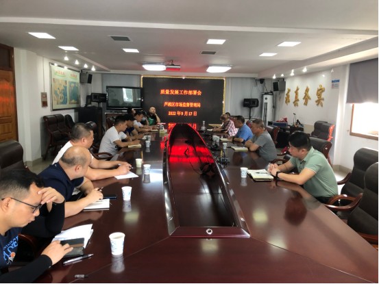 为加快质量强区建设,全面助力芦淞经济社会高质量发展,区市场监督管理局于9月17日召开会议,专题研究部署质量发展相关工作。 局领导班子全体成员、相关股室负责人及各市场监管所所长参加会议。