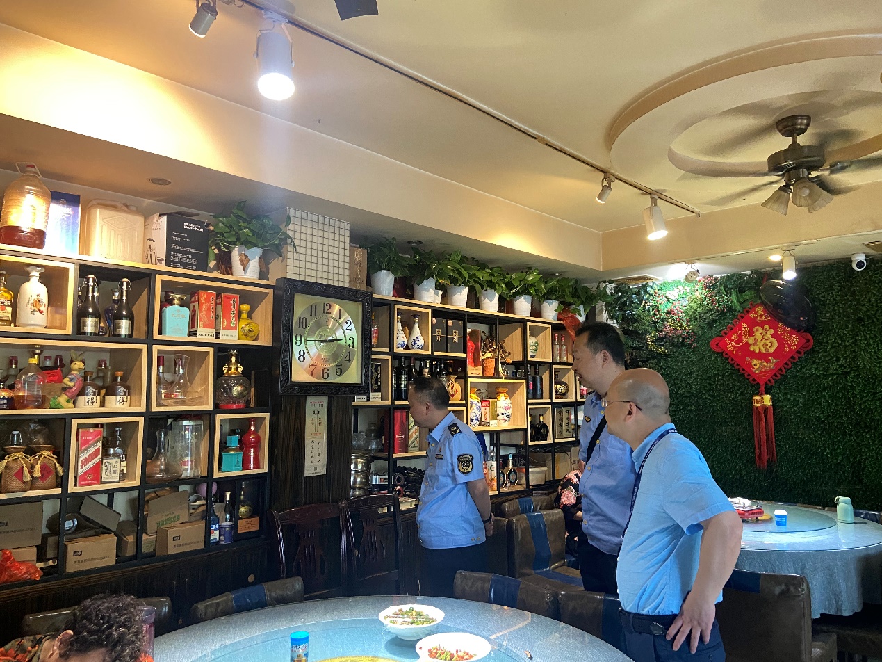 5月5日,芦淞区市场监管局局长夏志毅、副局长文武带队到株洲市第八中学及省直中医院周边沿街食品商户进行督查。此次共检查10家食品经营商户,重点检查了经营许可证、从业人员健康证、反餐饮浪费、禁烟标识等公益广告以及消防安全、食品安全、环境卫生等情况。对检查发现部分经营商户存在"三防设施"不到位、后厨摆放凌乱、卫生状况差、未见消毒记录等方面的问题,严格督促店主尽快整改到位,营造食品安全社会共治良好氛围。