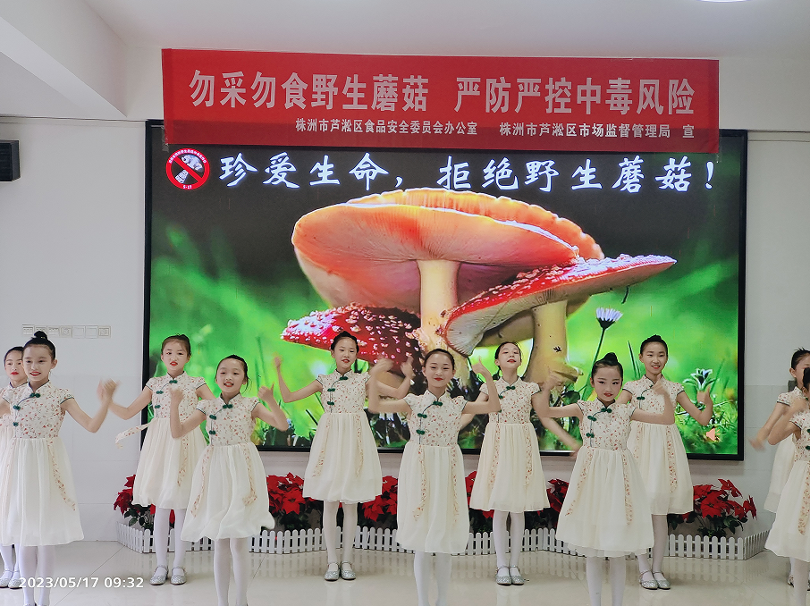 在活动现场,学校还组织学生们通过节目表演、手抄报比赛、播放知识动画短片等形式开展野生蘑菇中毒防控主题教育,进一步将“勿采勿食野生菌”观念深入学校师生及家长心中。
