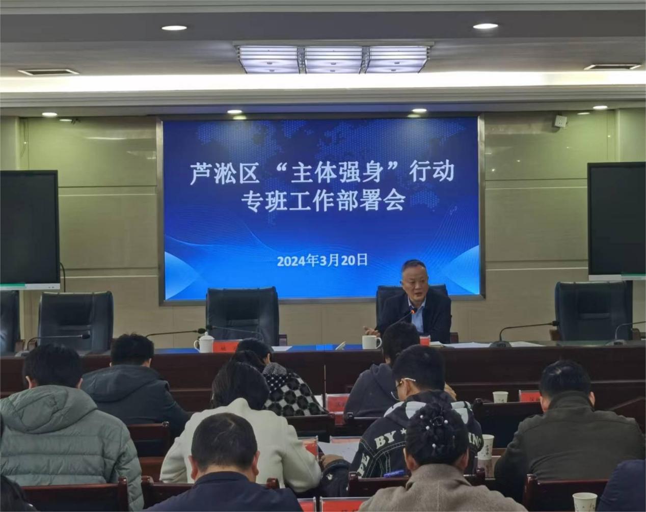 3月20日下午,芦淞区主体强身行动第一次工作推进会在区政府中心组会议室召开,作为"主体强身"行动牵头单位之一,区市场监督管理局局长夏志毅主持会议。