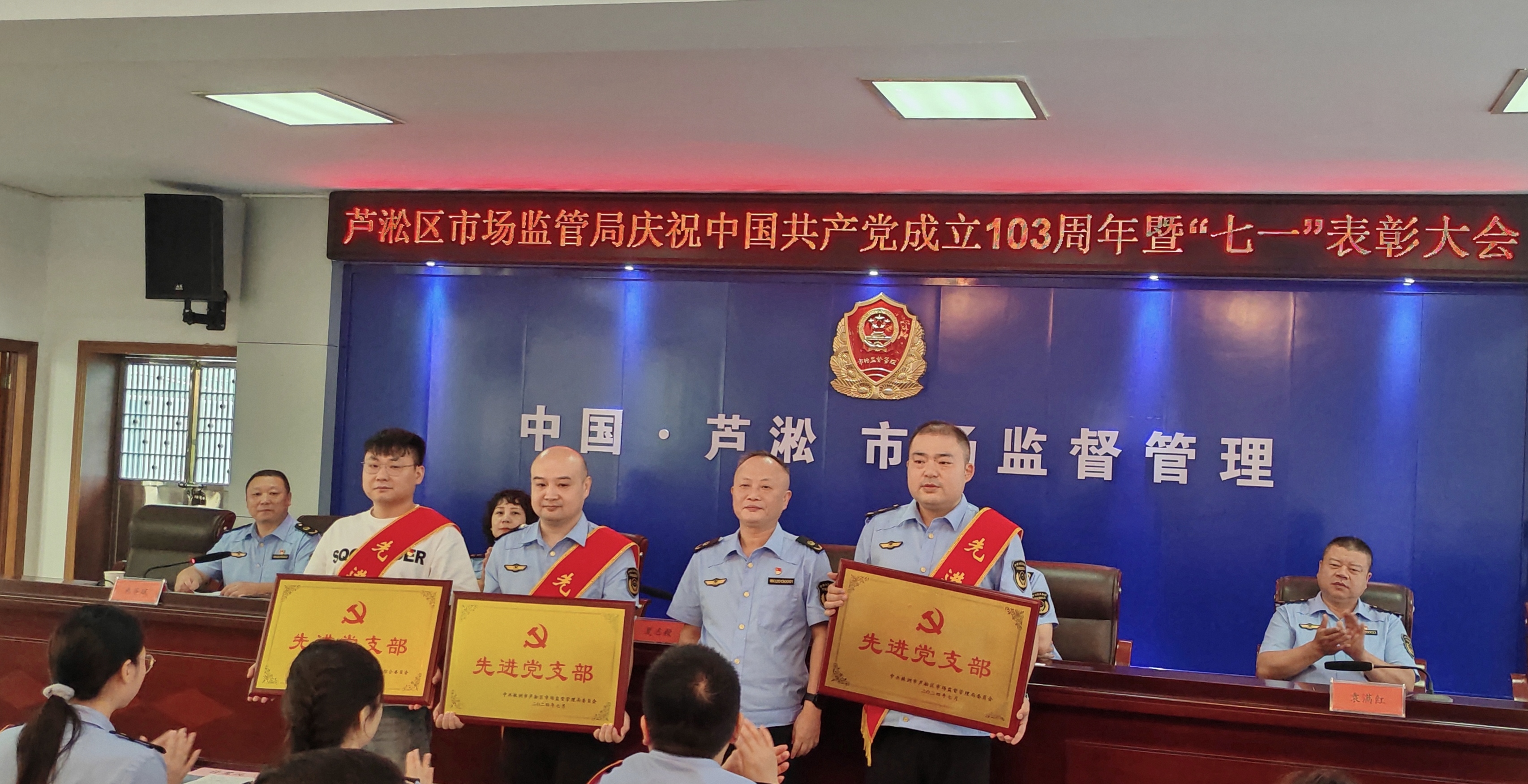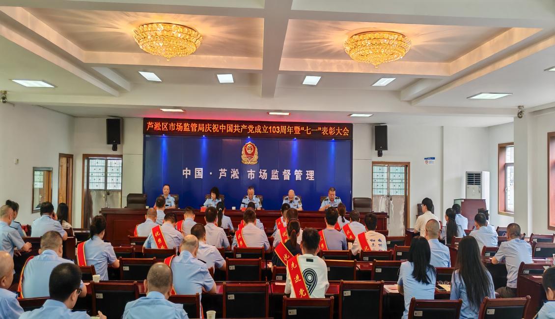7月1日上午,芦淞区市场监督管理局召开庆祝中国共产党成立103周年暨“七一”表彰大会。局领导班子成员、机关全体干部职工、各党支部书记及非公党支部代表等50余人参加会议。