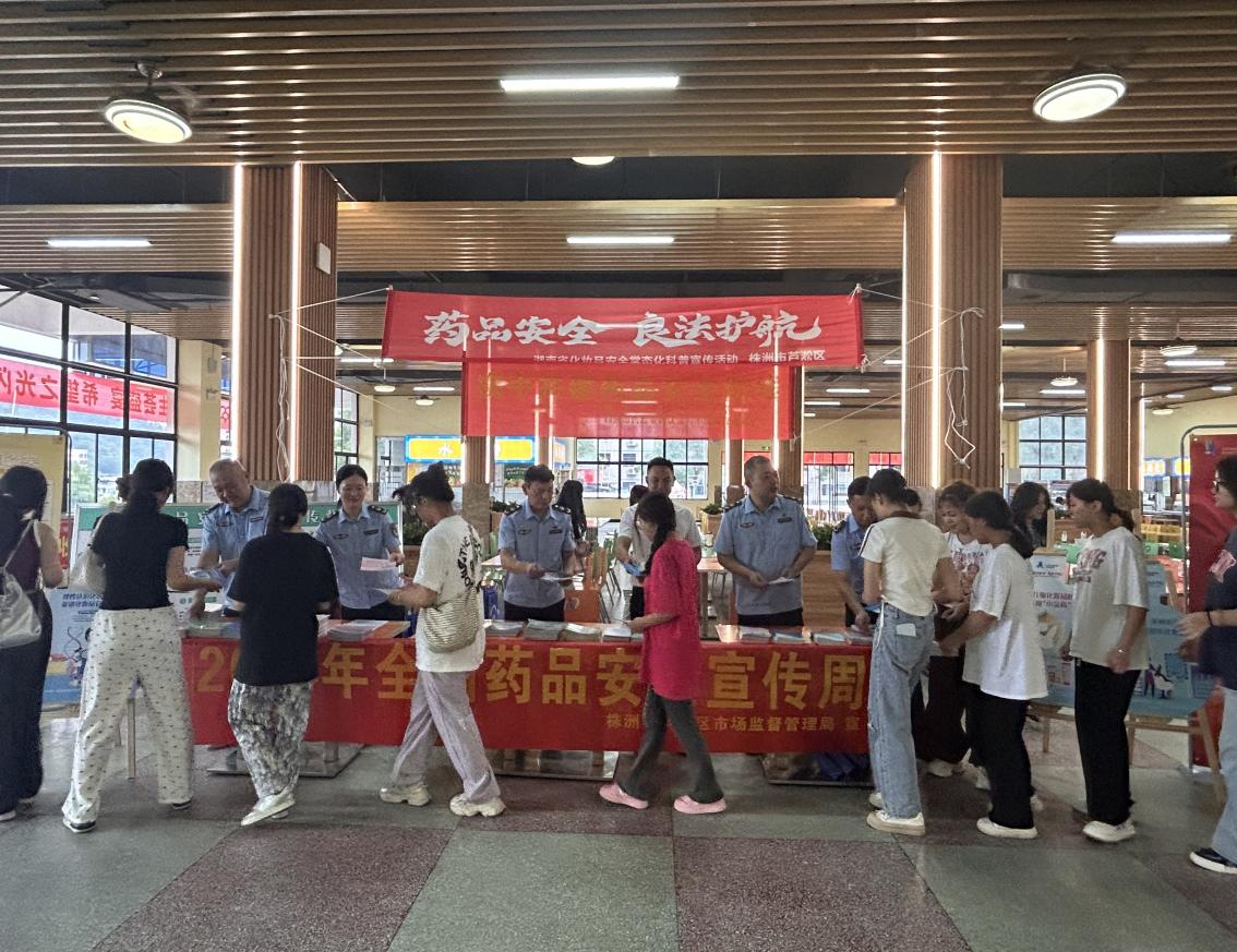 为满足人民日益增长的安全用药科普需求,营造全社会关心关注用药安全的良好氛围,助推健康株洲建设。根据株洲市市场监督管理局统一部署和安排,9月4日,芦淞区市场监督管理局携手株洲市市场监督管理局、株洲市药品审评认证与不良反应监测中心,走进校园、走进社区,在湖南中医药高等专科学校、建宁街道沿江社区建宁大舞台,举办了两场以"药品安全 良法护航"为主题的2024年"全国药品安全宣传周"活动。
