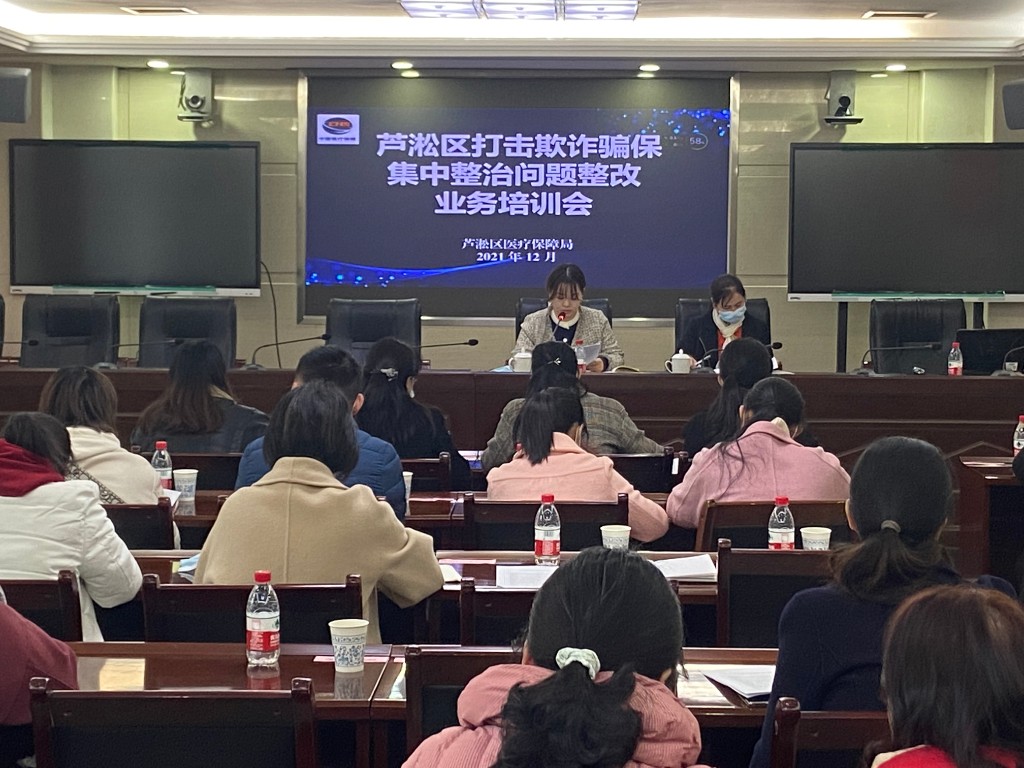 2021年12月3日,芦淞区医保局召开打击欺诈骗保集中整治问题整改业务培训会议。辖区24家定点医药机构参加会议。