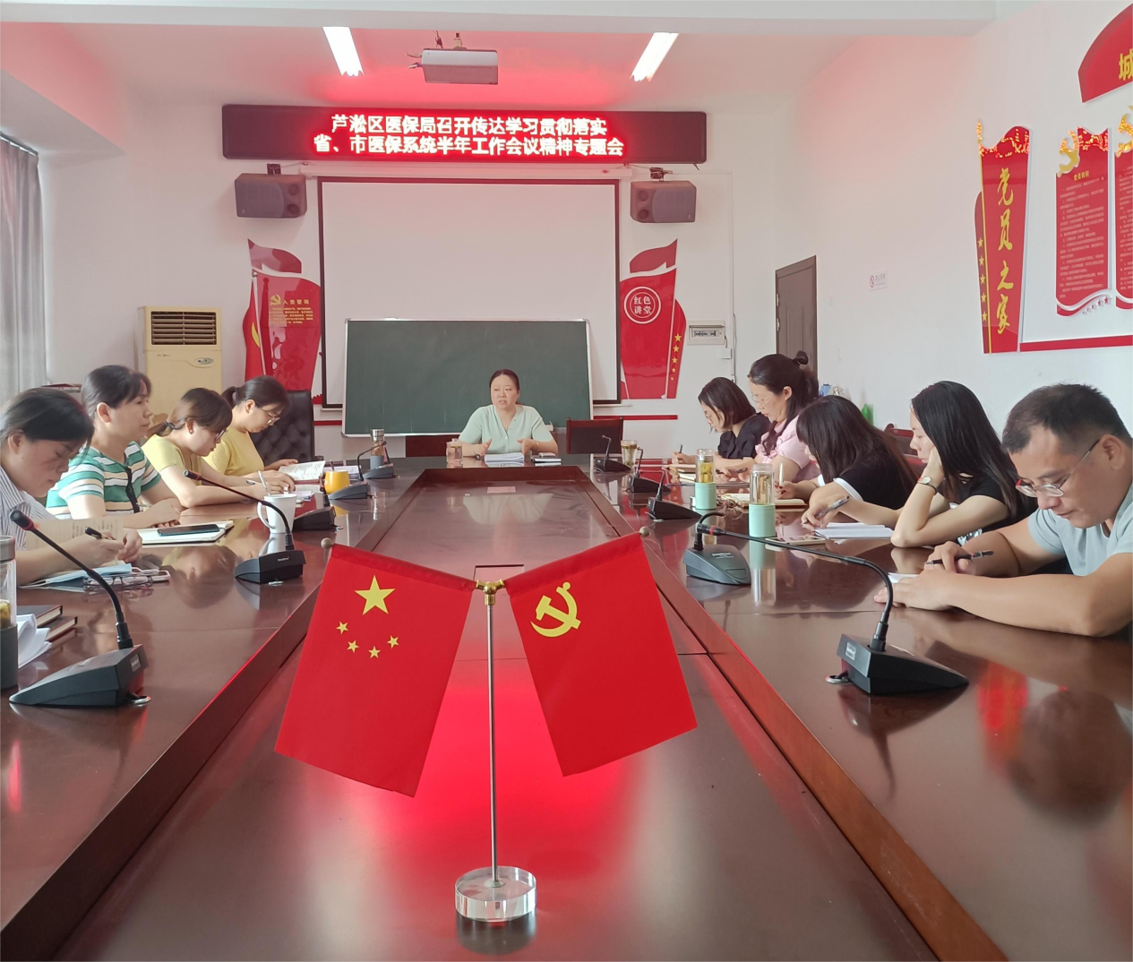 7月29日上午,芦淞区医保局召开传达学习贯彻落实省、市医保系统半年工作会议精神专题会,事务中心主任传达了省、市医保半年工作会议精神,各股室(中心)汇报了半年工作情况,局党组书记、局长王芳对上半年工作进行了总结并就下半年工作任务进行安排部署。