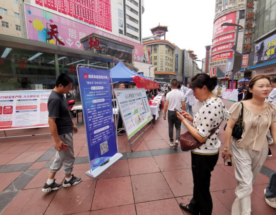 6月16日上午,区行政审批服务局在芦淞市场群结合2023年“安全生产月”活动开展“湘易办”APP推广活动。