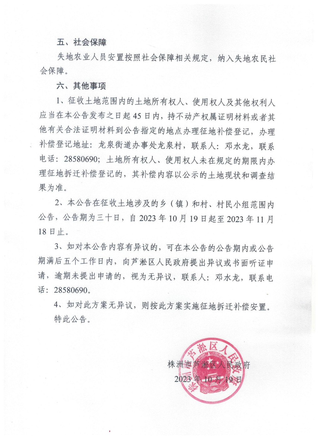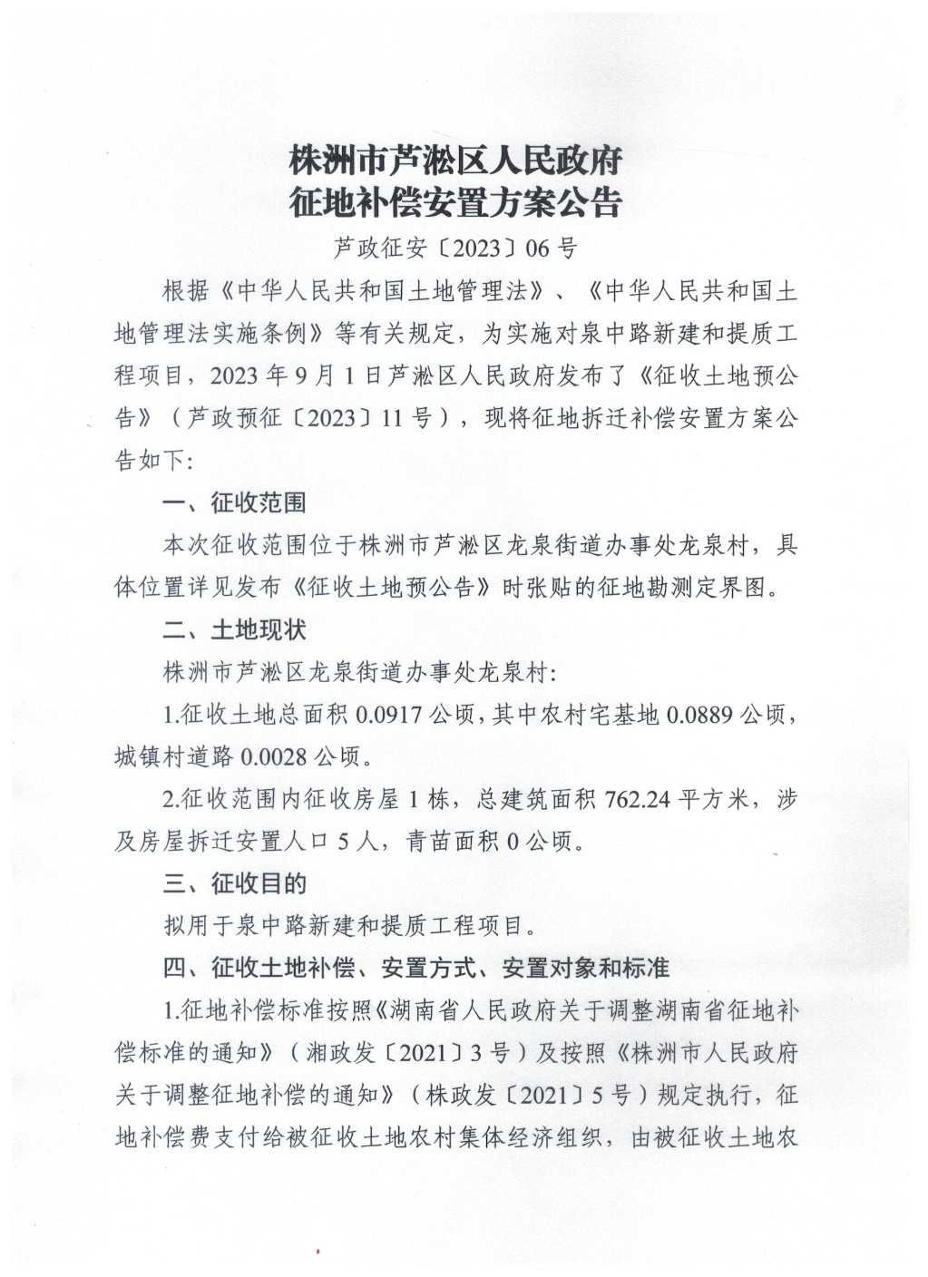 株洲市芦淞区人民政府征地补偿安置方案公告(芦政征安〔2023〕06号)