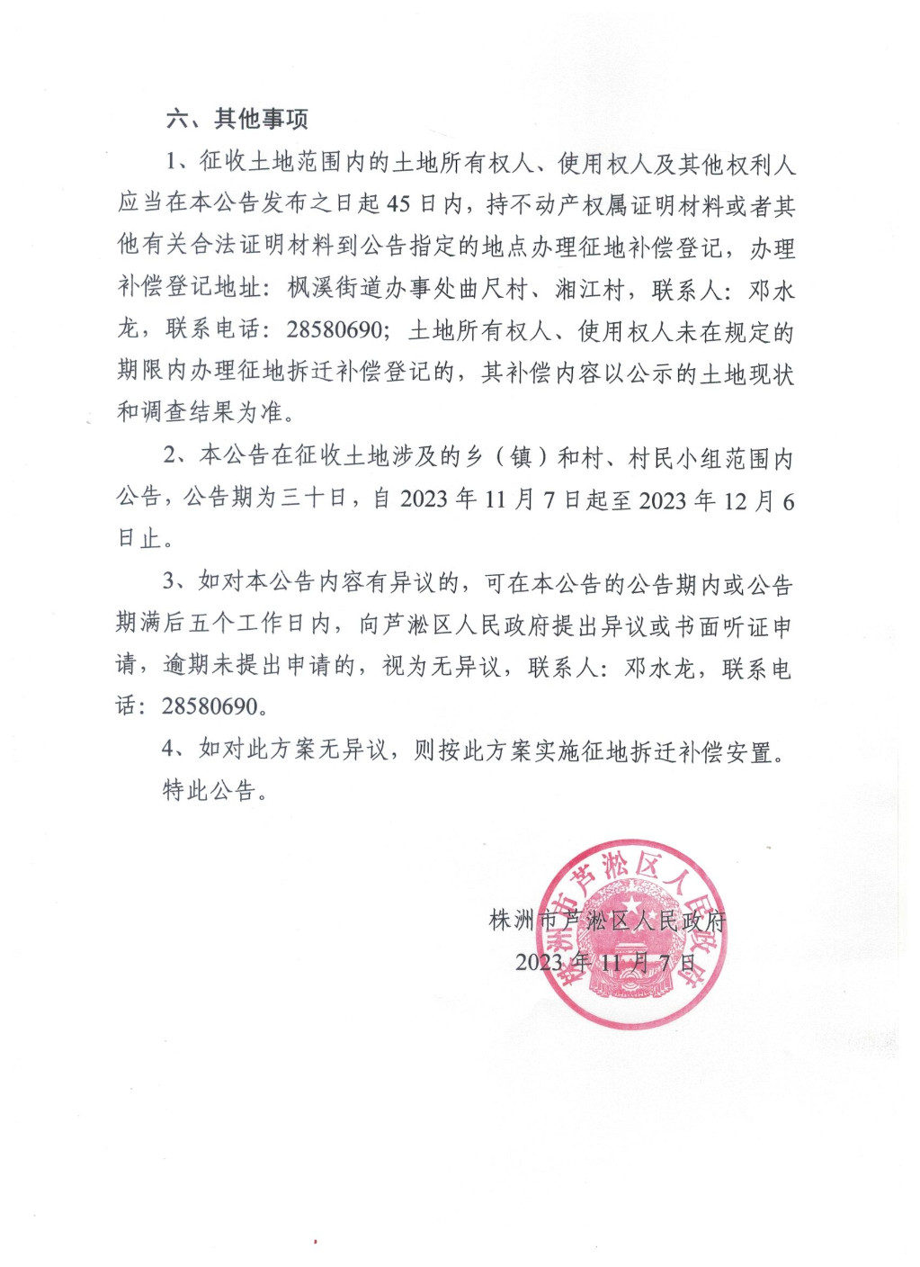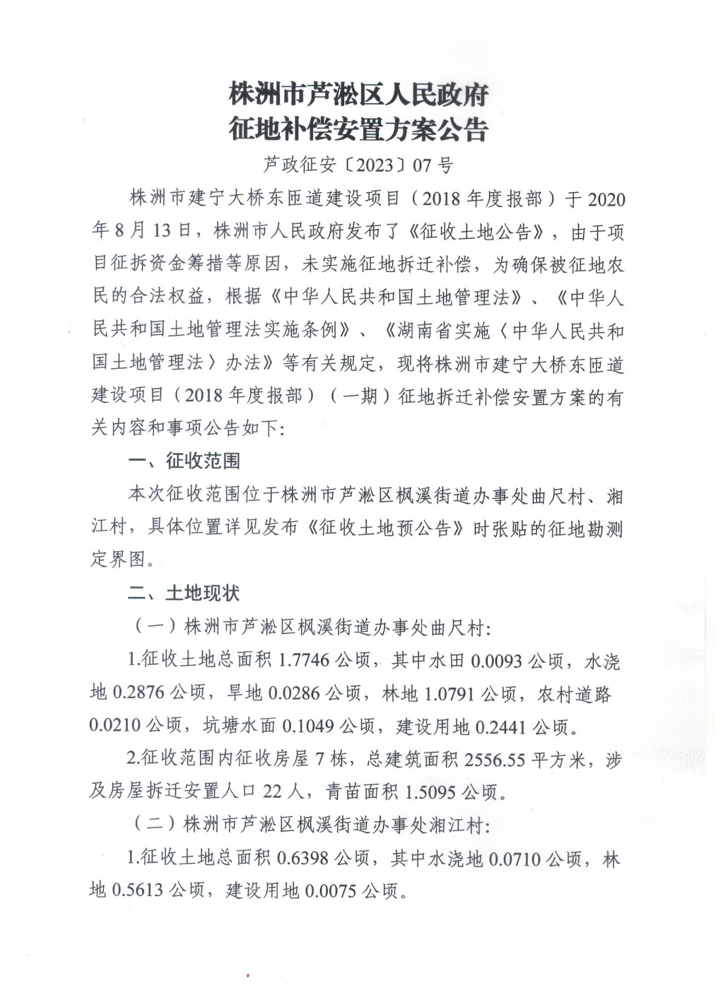 株洲市芦淞区人民政府征地补偿安置方案公告(芦政征安〔2023〕07号)