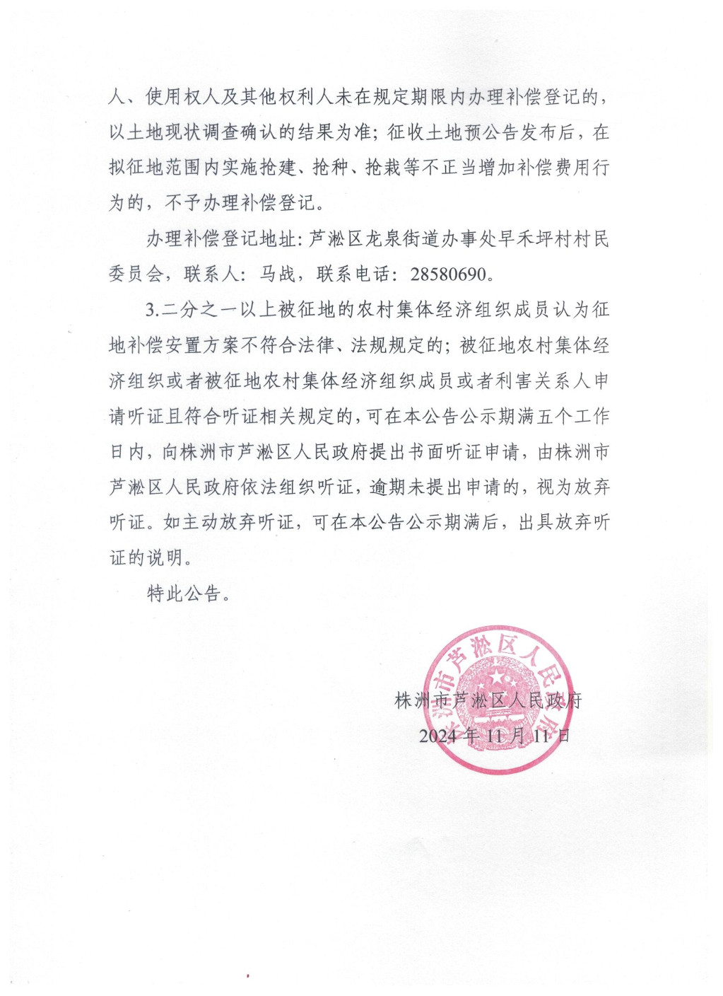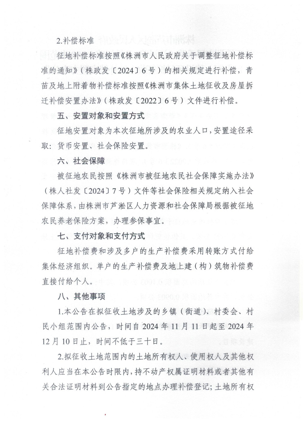 株洲市芦淞区人民政府关于株洲市2024年度第五批次建设用地(中心城区)(株洲市民兵训练营扩建)项目拟征收土地补偿安置方案公告