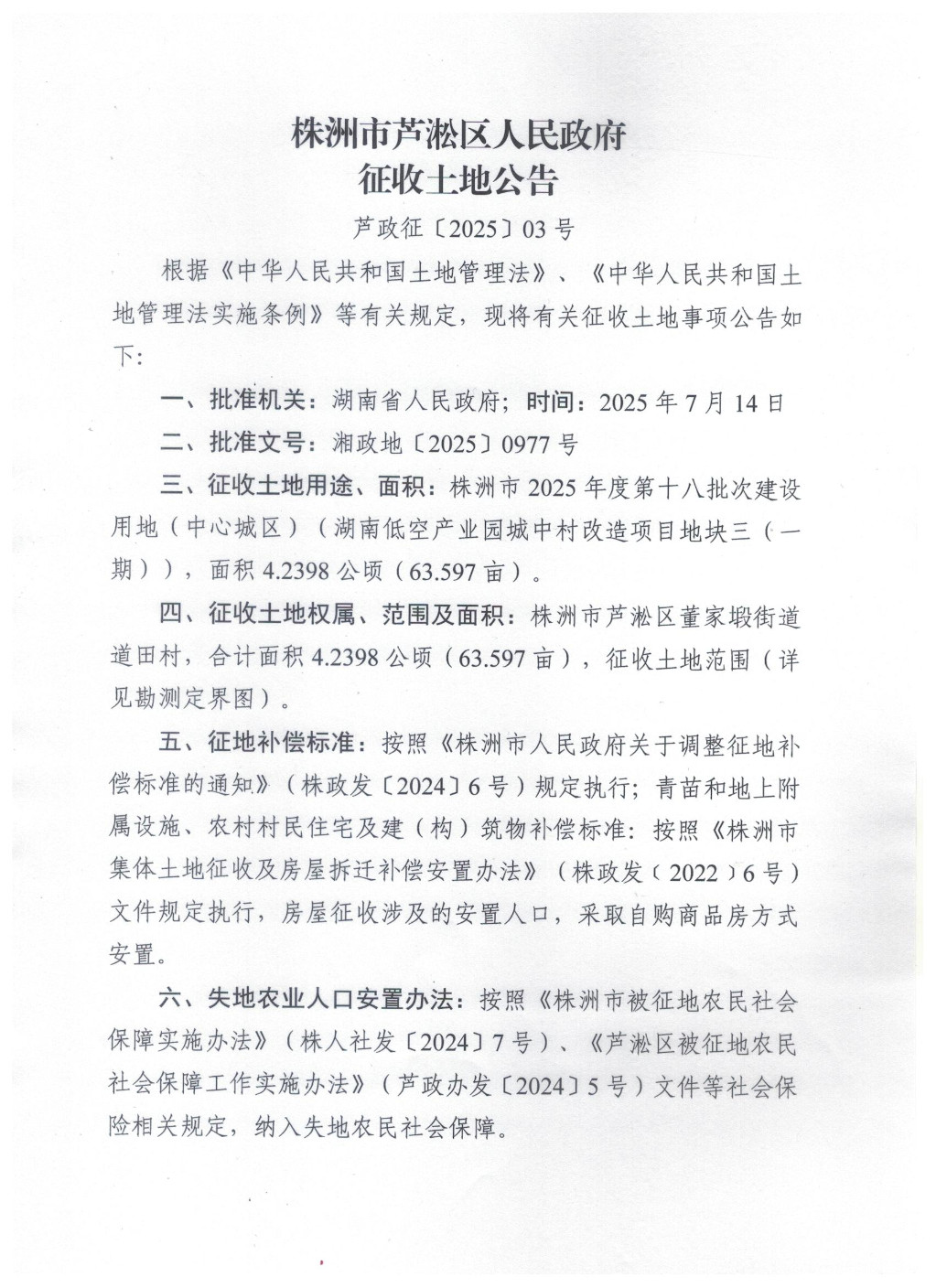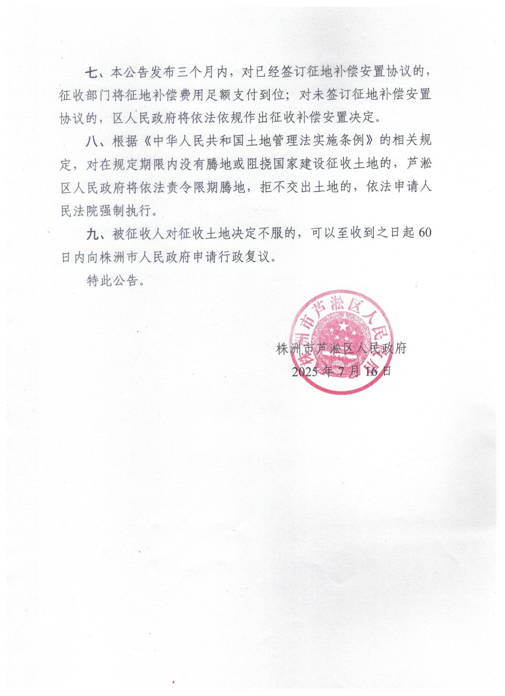 株洲市芦淞区人民政府征收土地公告(芦政征〔2025〕03号)