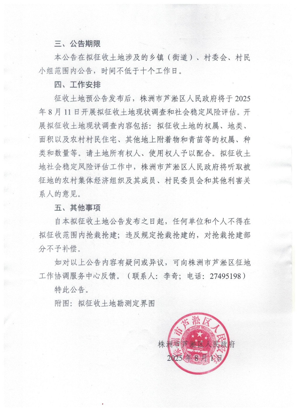株洲市芦淞区人民政府关于G4京港澳高速长沙广福至株洲王十万(朱亭)段扩容工程(芦淞区段)(圈外)建设用地项目征收土地预公告