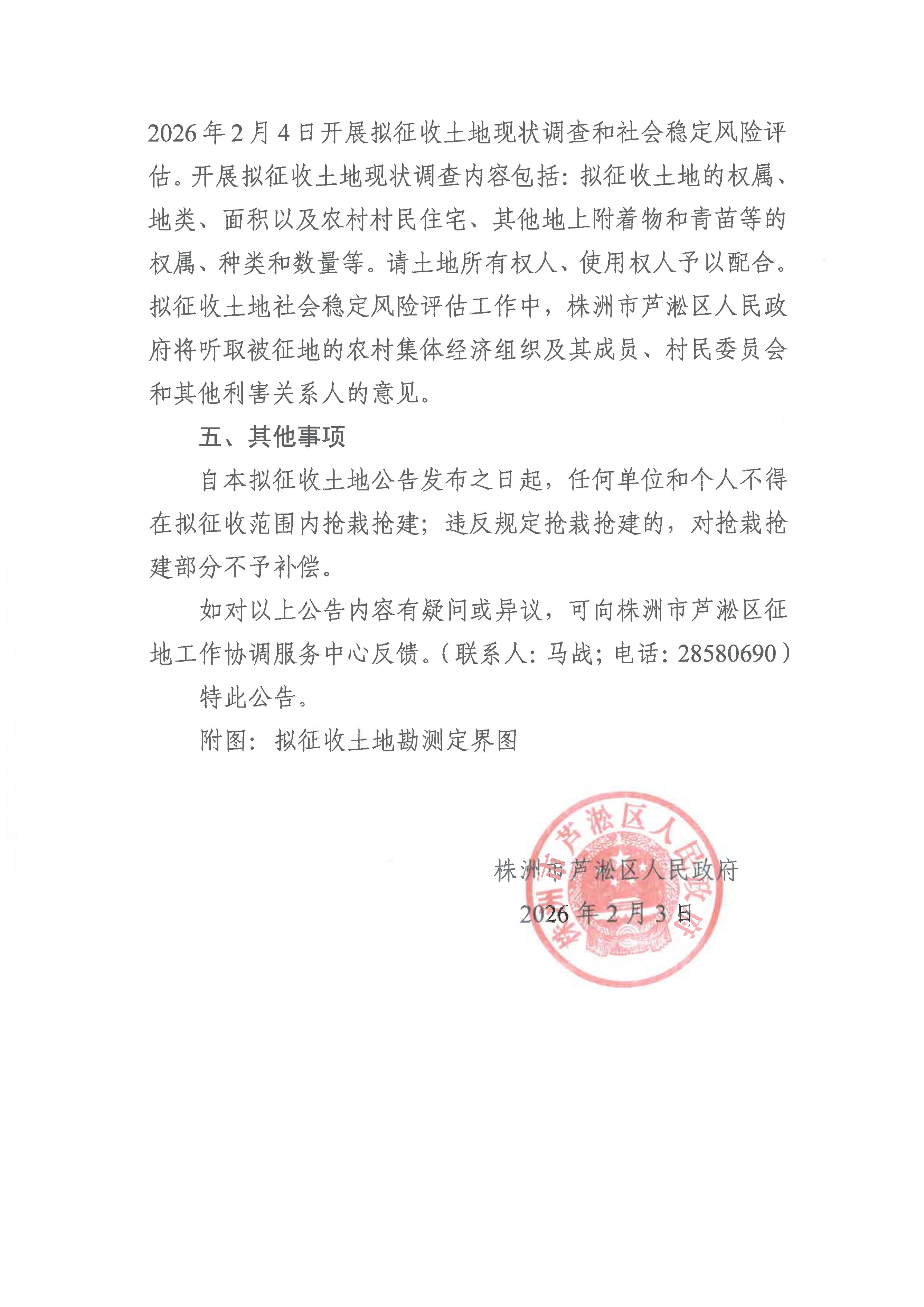 株洲市芦淞区人民政府关于株洲市曲尺村城中村改造项目一期征收土地预公告(芦政预征〔2026〕01号)