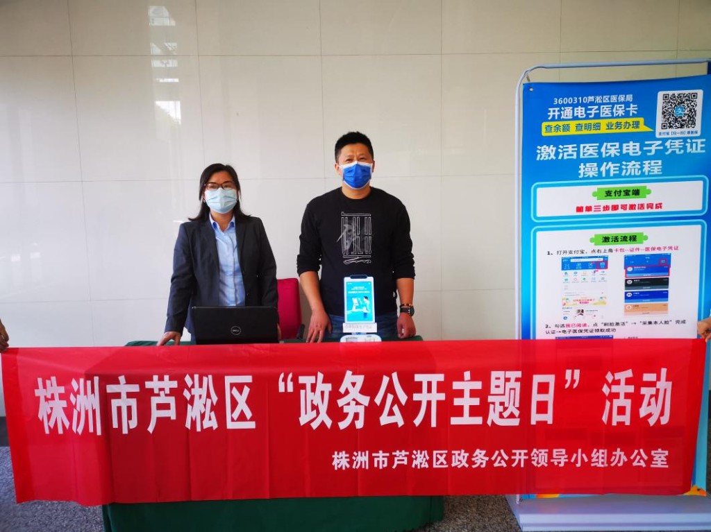 10月21日上午,芦淞区开展“电子医保凭证注册宣传”政务公开主题日活动,活动由区医保局承办。