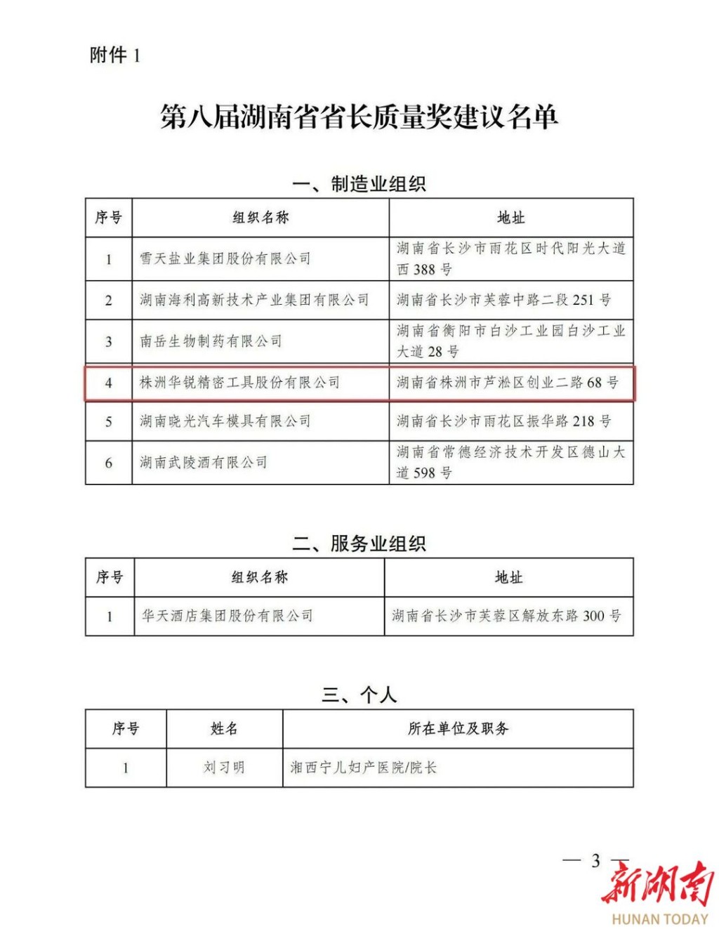 近日,根据《湖南省省长质量奖管理办法》(湘政办发〔2021〕34号)规定,在组织和个人自愿申报、各市州人民政府推荐基础上,湖南省省长质量奖评审委员会办公室完成了初审核查、受理公示、材料评审、现场评审、顾客满意度测评、综合评价等环节工作,位于芦淞区的株洲华锐精密工具股份有限公司成功上榜建议名单,为株洲唯一上榜企业。