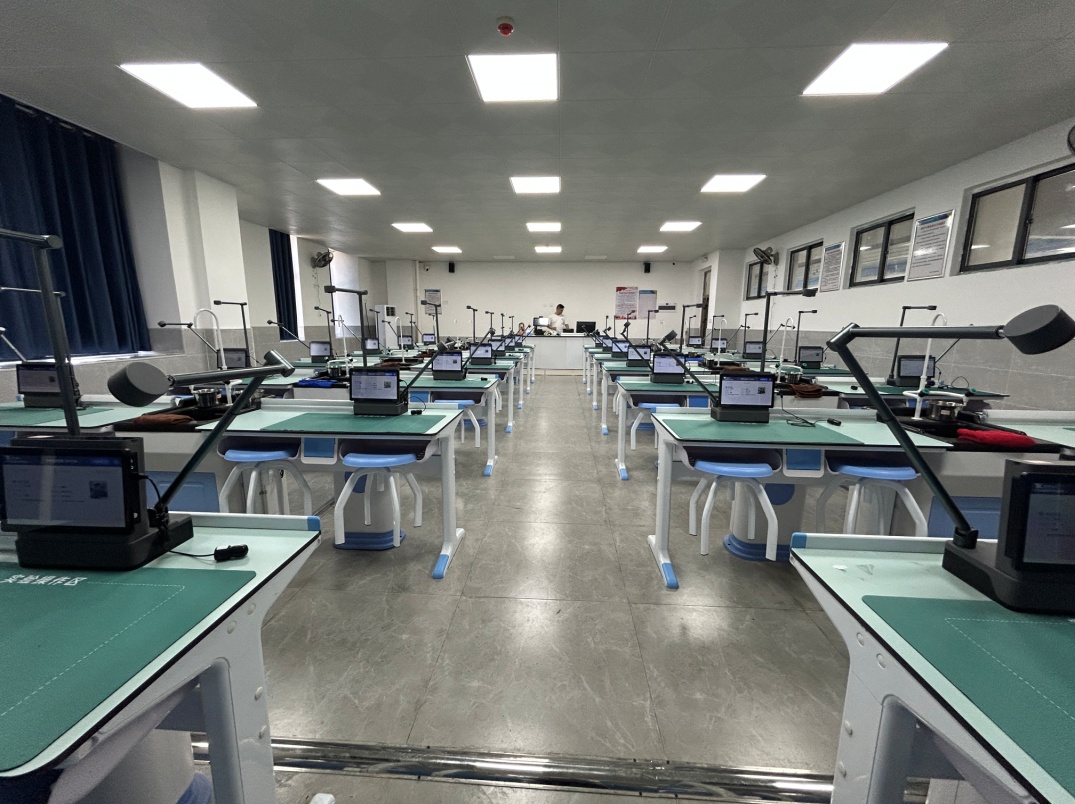 "以前上生物实验课,全班三十多个人围着一台显微镜看洋葱表皮细胞,轮不到自己动手时只能凑在后排踮脚看;现在考室里每人一台光学显微镜,载玻片、盖玻片都是全新的,连观察记录的绘图工具都配齐了,终于能安安心心做完整实验啦!"二中枫溪学校初二学生小林,指着崭新的标准化考室连连点赞。
