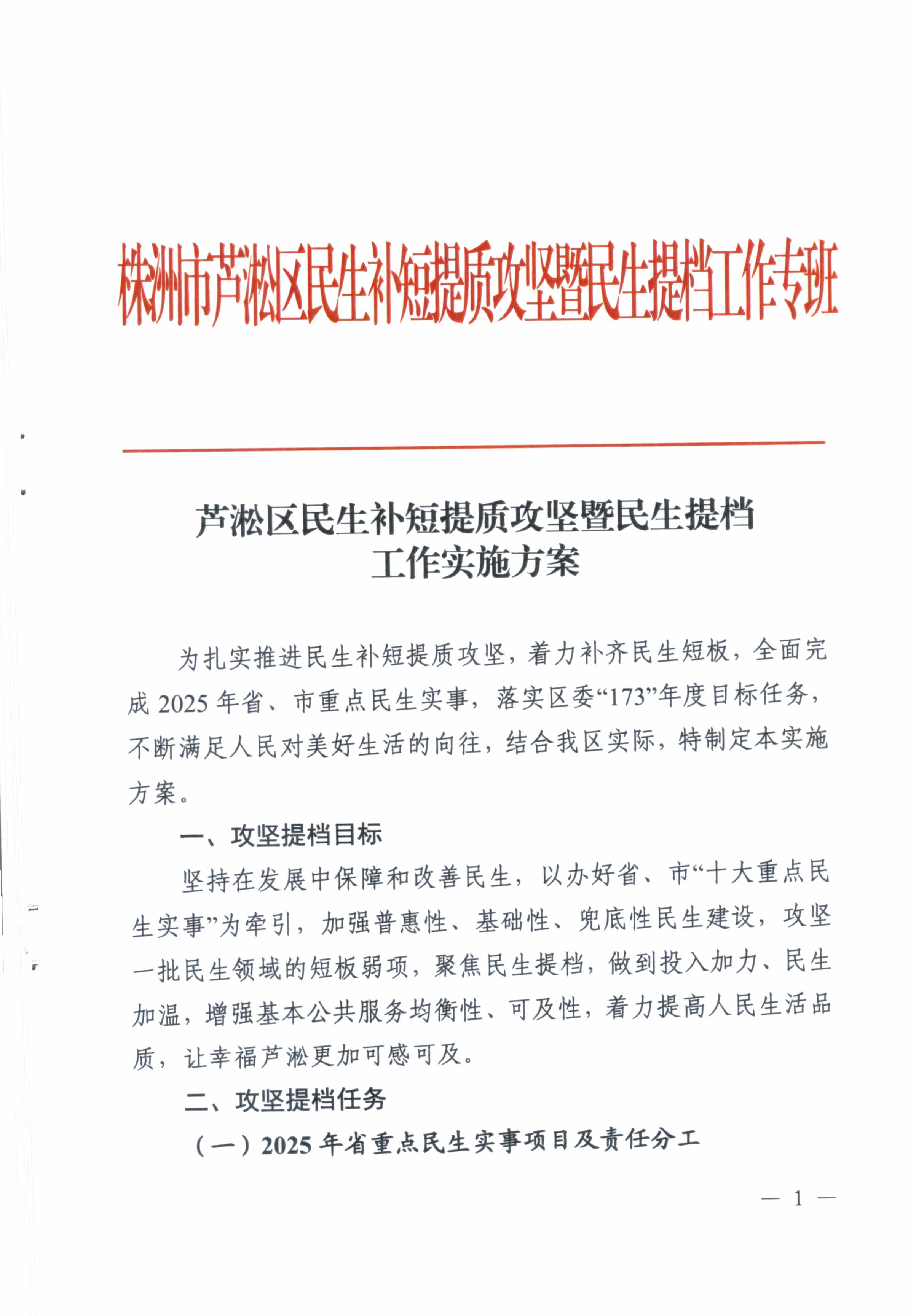 芦淞区民生补短提质攻坚暨民生提档工作实施方案