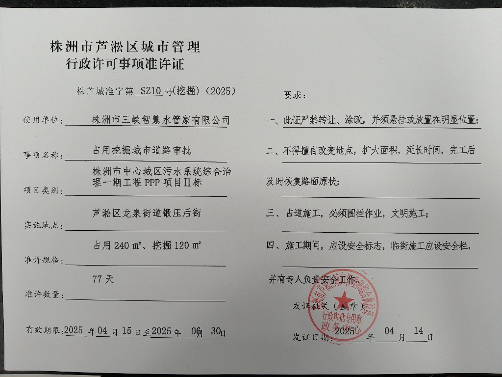 2025年4月份株洲市芦淞区城市管理和综合执法局行政许可案件信息公示