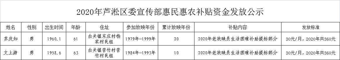 2020年芦淞区委宣传部惠民惠农补贴资金发放公示