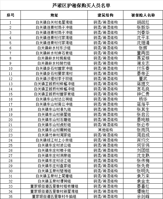 为深入贯彻落实习近平总书记考察湖南重要讲话精神,巩固拓展脱贫攻坚成果同乡村振兴有效衔接,坚决守住不发生规模性返贫的底线,全面推进乡村振兴。现我区为全区监测对象购买平安产险“护湘保”家庭财产保险,提升监测对象抵御财产损失风险能力。现将收益监测户名单予以公示,敬请全区人民监督。