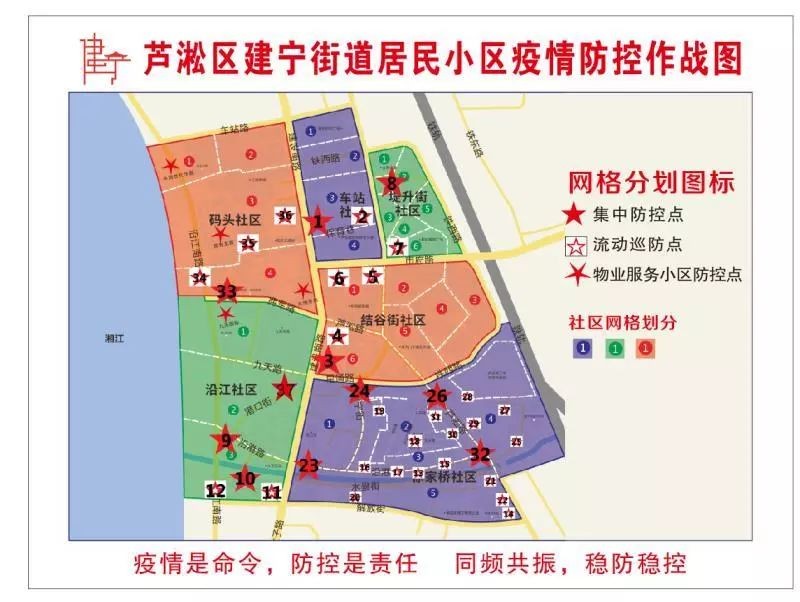芦淞区建宁街道老旧小区和流动人口非常多,特别是无物业管理小区占比达63.8%,4名县处级联点领导会同街道社区将全街道科学划分为37个片区,连夜绘就6张“疫情防控作战图 ”,设置11个固定防控点、26个流动防控哨,实行24小时监测管控。