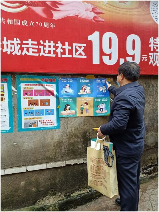 操坪社区工作队张贴防疫海报