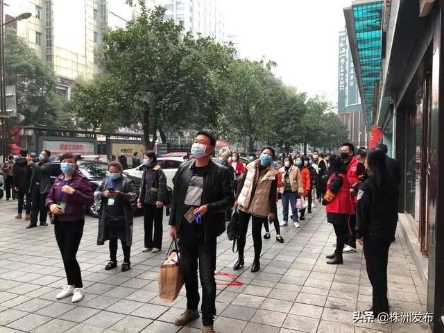 商户排成两队有序进入