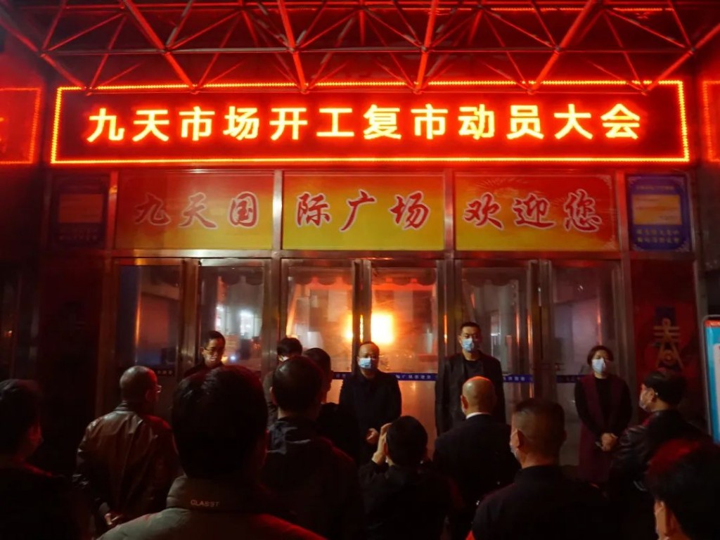目前,九天国际市场有经营商户567家、从业人员4000余人,现已复市商户300家、复工人员1193人,商户复市率达52.9%,还有70余家申请复市的省外商户正在逐一核实。九天布辅市场有经营商户318家、从业人员448人,现已复市商户134家、复工人员162人,商户复市率达42.1%,还有54家申请复市的商户正在进行核实。同时,市场还通过线上批发销售、管理运营,让部分商户在网上实现了复工。