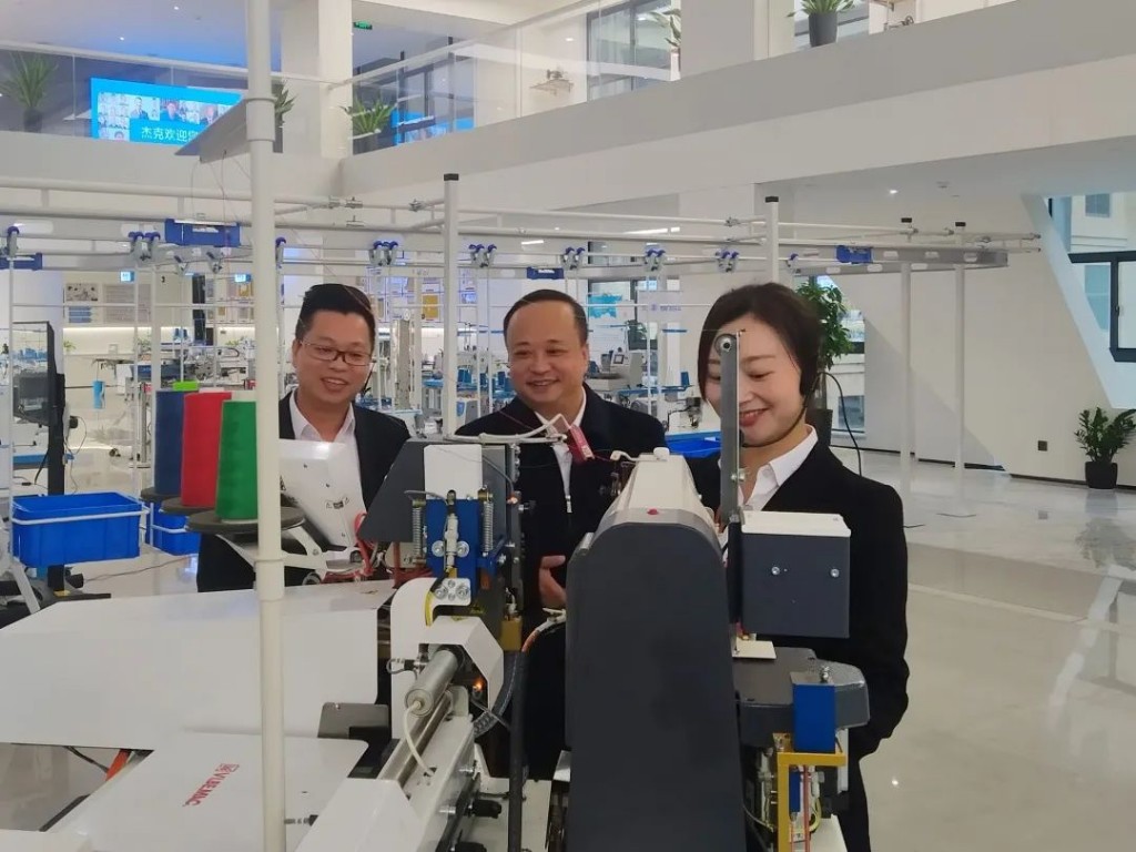 22日上午,杨晓江一行到杰克控股集团有限公司考察对接,并参观了杰克智能工厂、展览馆。杰克集团是专注于服装缝制机械研制的国际化民营高新技术企业,成功收购了Bullmer(奔马)、Topcut(拓卡)等全球顶级缝制设备生产企业,在服饰智能制造方面具有突出优势。在下午的交流座谈会上,阮德福董事长全面介绍了杰克集团的发展历程、谋篇布局和未来发展方向,对芦淞区大力推进服饰产业转型发展给予高度评价。杨晓江表示,杰克集团梦想愿景好、制度管理优、自主创新强、资源集聚多、战略规划实,令人印象深刻,值得学习。芦淞区一直坚持以产业链思维抓产业,正着力构建以研发催生订单、订单拉动生产、生产提升品质、品质促进销售、销售反馈需求、需求决定研发的产业链闭环,打造功能共享型服饰产业新生态,期待与杰克集团在产业资源整合、供应链提升、直播平台打造等方面开展合作,共同推进服饰产业数字化、网络化、智能化升级。
