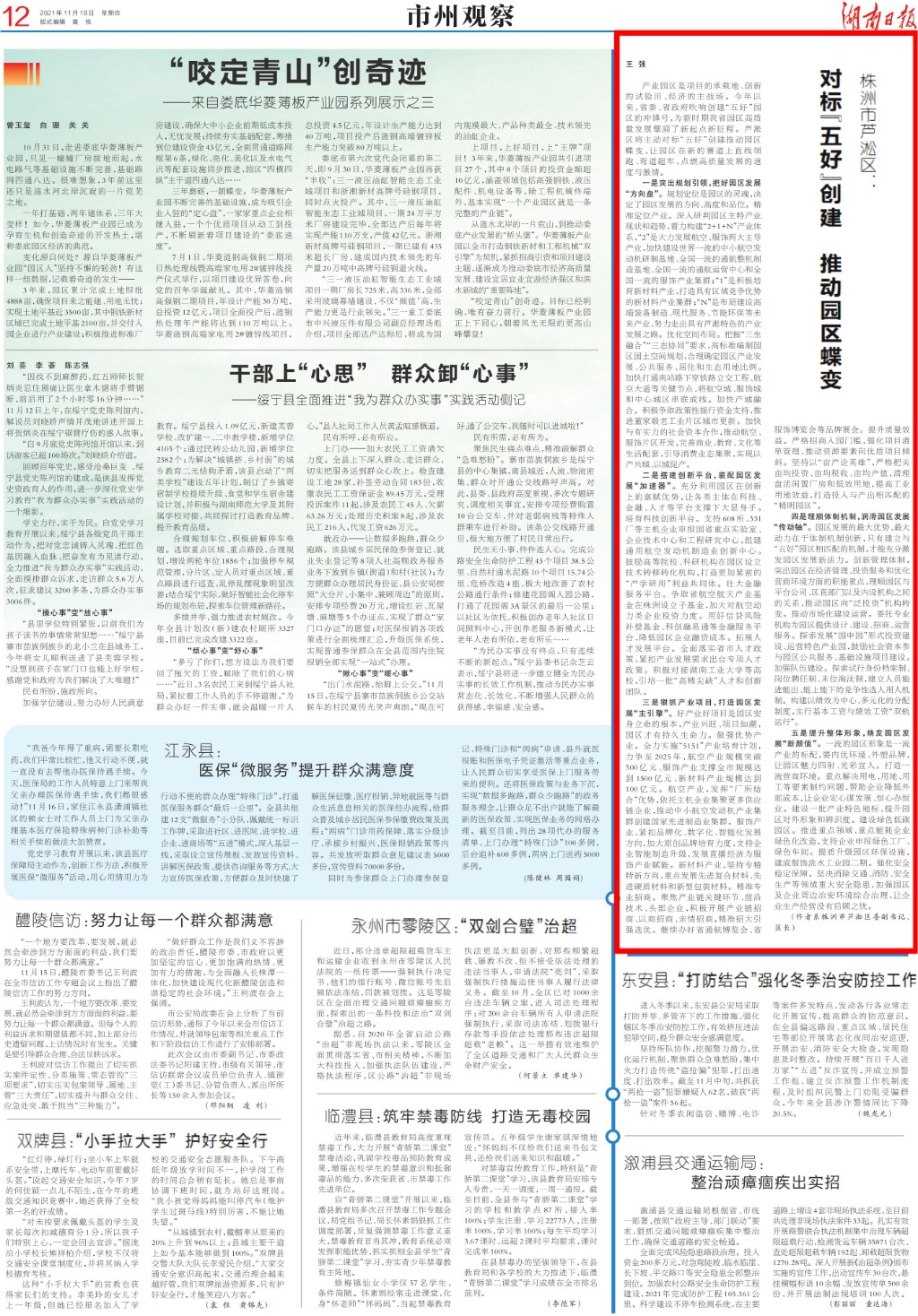 二是搭建创新平台,装配园区发展“加速器”。充分利用园区在创新上的禀赋优势,让各类主体在科技、金融、人才等平台支撑下大显身手。培育科技创新平台。支持608所、331厂等主机企业申报国省重点实验室、企业技术中心和工程研究中心,组建通用航空发动机制造业创新中心。鼓励高等院校、科研机构在园区设立技术转移转化机构,打造更加紧密的“产学研用”利益共同体。壮大金融服务平台。争取省航空航天产业基金在株洲设立子基金,加大对航空动力类企业投资力度。用好信贷风险补偿基金、科创融易通等金融服务平台,降低园区企业融资成本。拓展人才发展平台。全面落实省市人才政策,紧扣产业发展需求出台专项人才政策。积极对接湖南工业大学等高校,引培一批“高精尖缺”人才和创新团队。