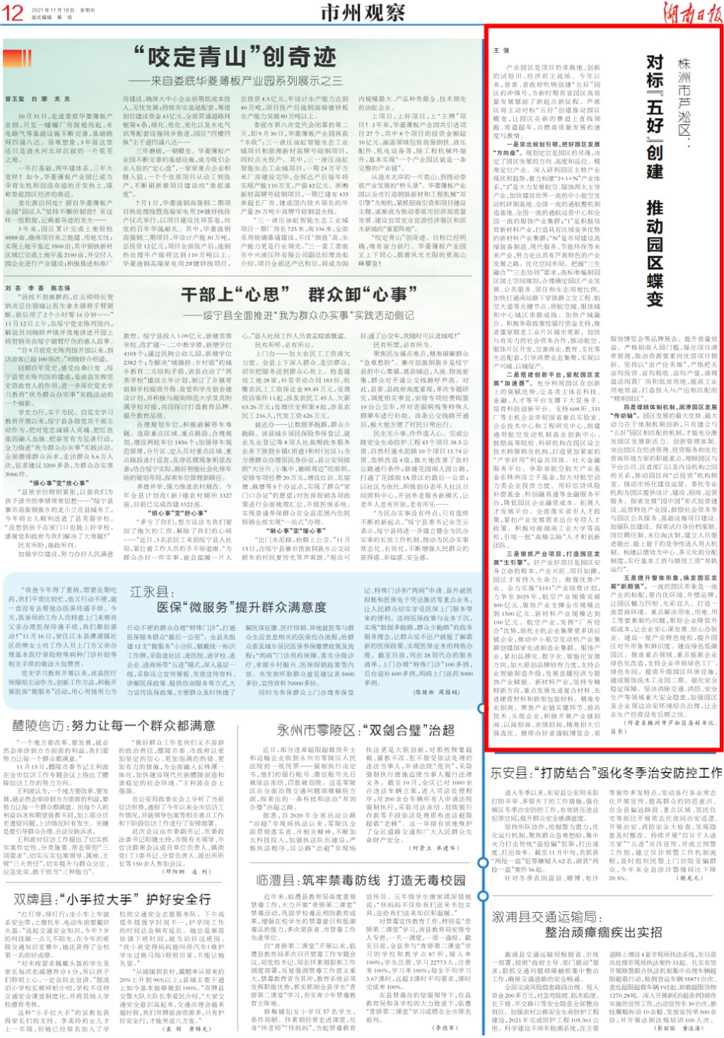 产业园区是项目的承载地、创新的试验田、经济的主战场。今年以来,省委、省政府吹响创建“五好”园区的冲锋号,为新时期我省园区高质量发展擘画了新起点新征程。芦淞区将主动对标“五好”创建推动园区蝶变,让园区在新的赛道上直线领跑、弯道超车,点燃高质量发展的速度与激情。