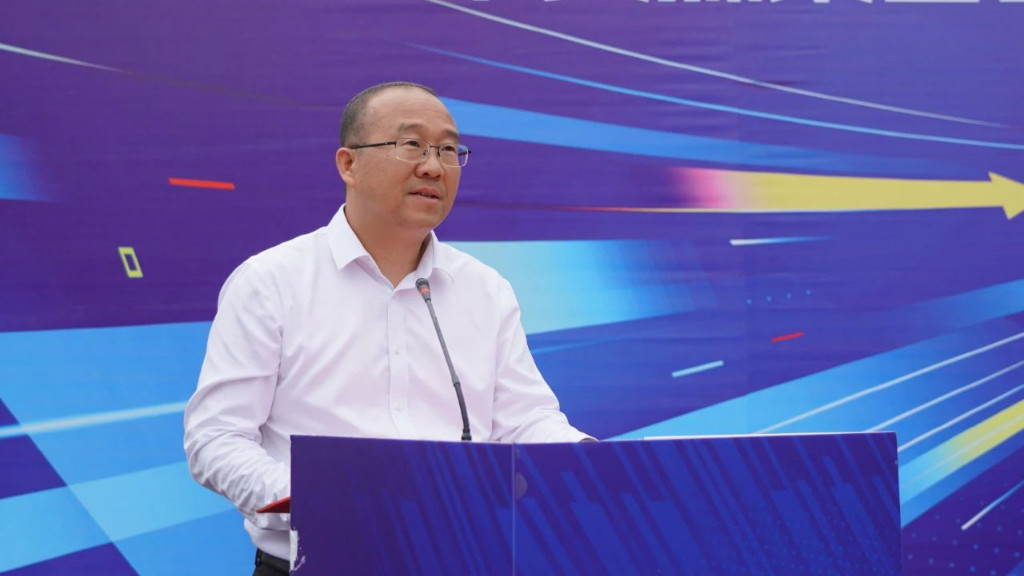 株洲市资源投资集团董事长杨正明宣布项目开工,芦淞区委书记唐卫湘致辞。