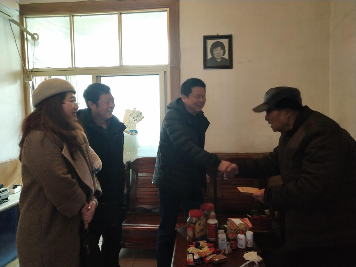 易利民(右二)走访慰问贺家土中学退休教师唐泽麓(右一)