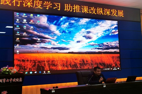 深度学习,是学生高品质学习的一种状态,一种方式,也是一种美好愿景。教科院副院长王迅从社会、教师、学校、中考、高考等各个方面就老师们的分享做了指导和交流:高度肯定了本次分享交流,称赞株洲市第七中学是一个有学习氛围的团队,充分展示了课改示范校的引领作用,深耕了课堂,以立德树人为中心,将新课改落实到学校的各个层面。他还从深度学习的项目价值、深度学习的项目意义、深度学习的针对性、深度学习的基本样态等几个方面,结合教学实例,精辟诠释了“深度学习”的理念。讲话中,不仅有最新的教育理念,更有实用的方法,对教师们既有方法论的指导意义,又有引人思考的启发。老师们目不转睛、聚精会神,认真地做笔记、不时拍下屏幕上的经典理论,都纷纷感叹受益匪浅。