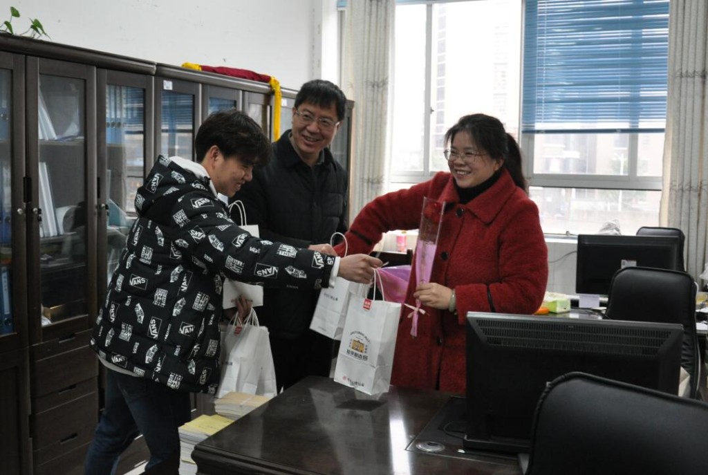 3月8日上午,在校长黄新、工会主席汤益天的带领下,学校8名男教师手捧鲜花为广大女老师们送去节日的祝福。活动中,献花小组为各年级女教师献上美丽的红色玫瑰花和精心书写的节日贺卡,同时致以节日的温馨祝福。收到鲜花的女同胞们有的不知所措,有的欣喜感谢,脸上都洋溢起了幸福的微笑,全校沉浸在一片幸福、喜悦的节日氛围中。