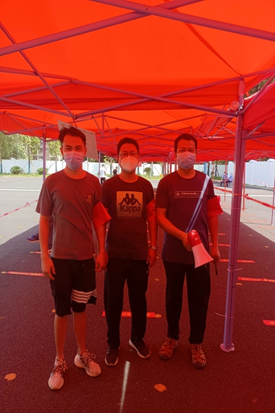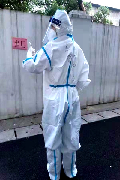 奋战在抗疫一线的陈志明老师(右一 00后陈昱州同学的父亲)