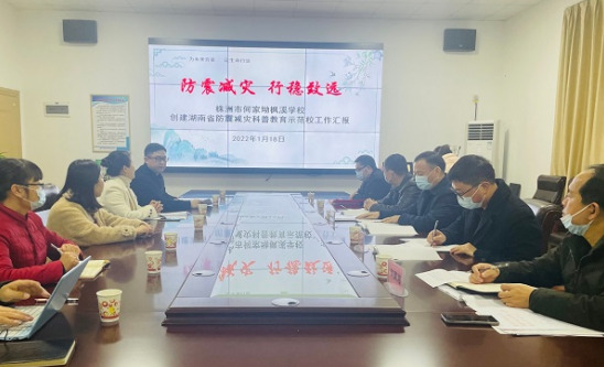 1月18日,株洲市地震局局长朱运良、科长刘真湘,株洲市教育局学安科科长荣志,芦淞区应急管理局局长刘湛、副局长蔡月菁,芦淞区教育局总督学叶贞涛到何家坳枫溪学校,召开2021年度湖南省防震减灾科普教育示范校(何家坳枫溪学校)授牌座谈会。
