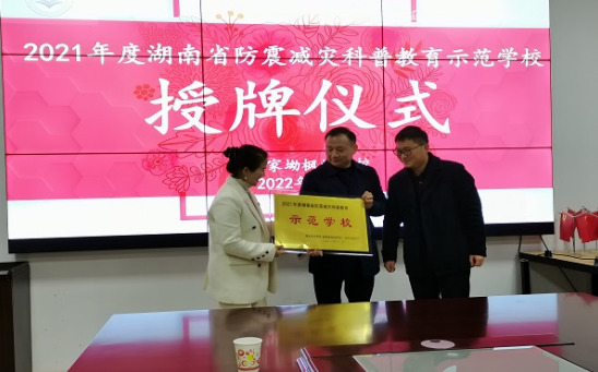 接着,刘真湘宣读《省地震局、省应急管理厅、省教育厅关于2021年度湖南省防震减灾科普教育示范学校名单的通知》。叶贞涛强调“生命至上,安全第一”,愿学校将防震减灾教育与行远教育结合与学科融合,与家庭教育整合,探索实践经验,并进行推广。蔡月菁希望枫溪学校能努力发挥学校教育主渠道作用,“小手拉大手”,孩子们能把在学校掌握的防震减灾科普知识带回去。荣志对何家坳枫溪学校的防震减灾工作给予肯定,该校工作聚焦“以人为本”,真正做到关心关爱学生,不断创新,活动落地。