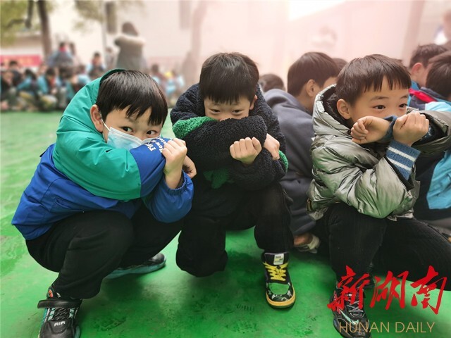 上午10:40,警报响起,烟雾弥漫整个教学楼楼道,全校师生按照预定逃生方案,循序有序疏散,整个过程仅用了2分42秒,1000多名师生全部安全到达操场。