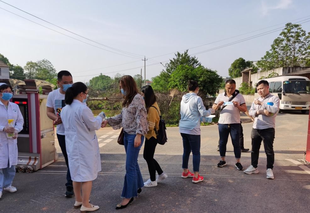 为随行人员发放口罩、测量体温