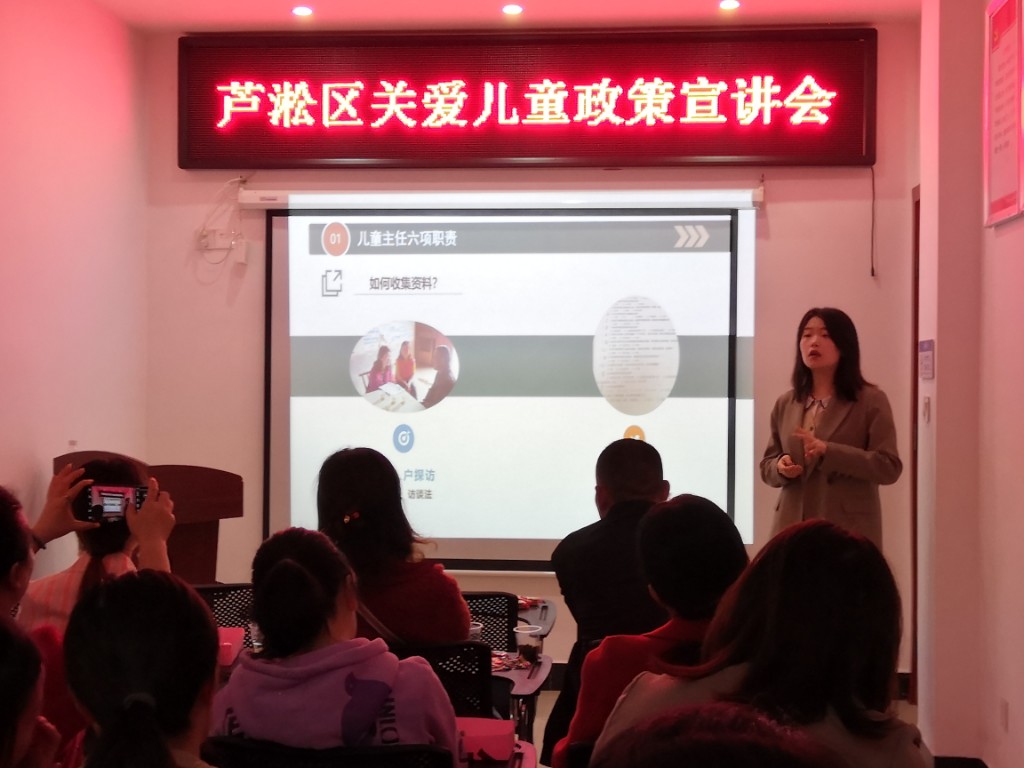 本次宣讲会特别邀请了株洲市虹雨社会工作服务中心总干事旷心怡作为主讲人。全区7个街道的儿童领域工作人员以及社工站社工,共22人参加本次宣讲,芦淞未保中心下周还将在白关镇开展第二场宣讲会,切实做好困境儿童和留守儿童关爱保护工作。