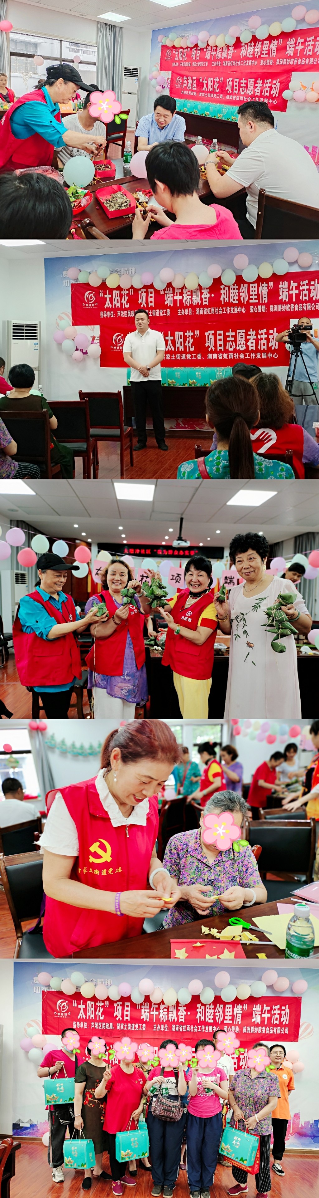 在芦淞区民政局、贺家土街道党工委的指导下,在大塘冲社区和爱心企业的支持下,6月10日上午,“太阳花”社工介入社会救助服务项目在大塘冲社区4楼会议室开展了一场“端午粽飘香·和睦邻里情”的主题活动。区民政局在职党员、爱心企业株洲爵妙欧香食品有限公司负责人王总、“太阳花”项目志愿者以及服务对象等共计30余人参加本次活动。