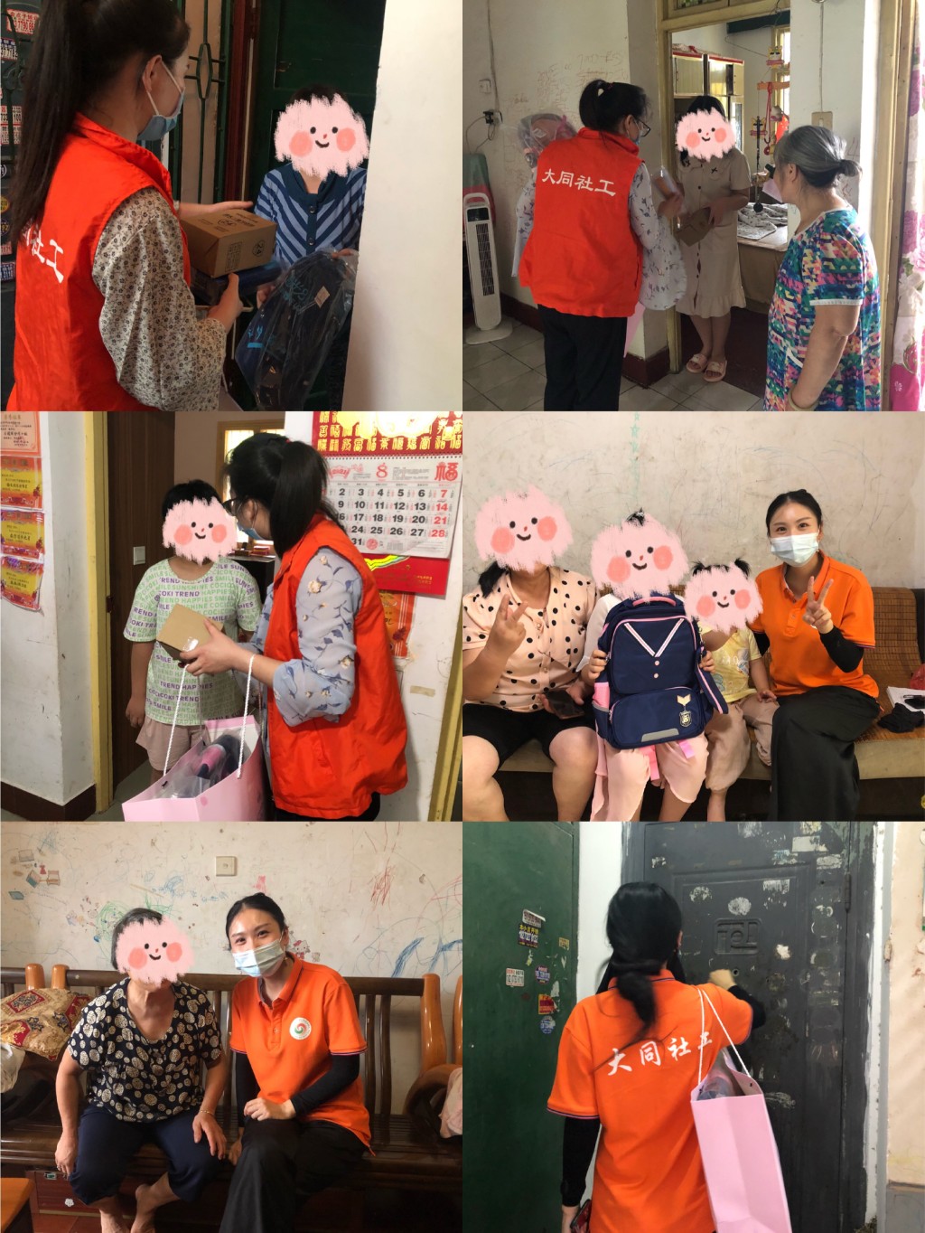 8月20日及8月23日,芦淞区未成年人保护工作项目社工对辖区内16名孤儿、事实无人抚养儿童、留守儿童进行上户探访,为他们送去爱心企业提供的书包、文具盒及马克笔等学习用品。