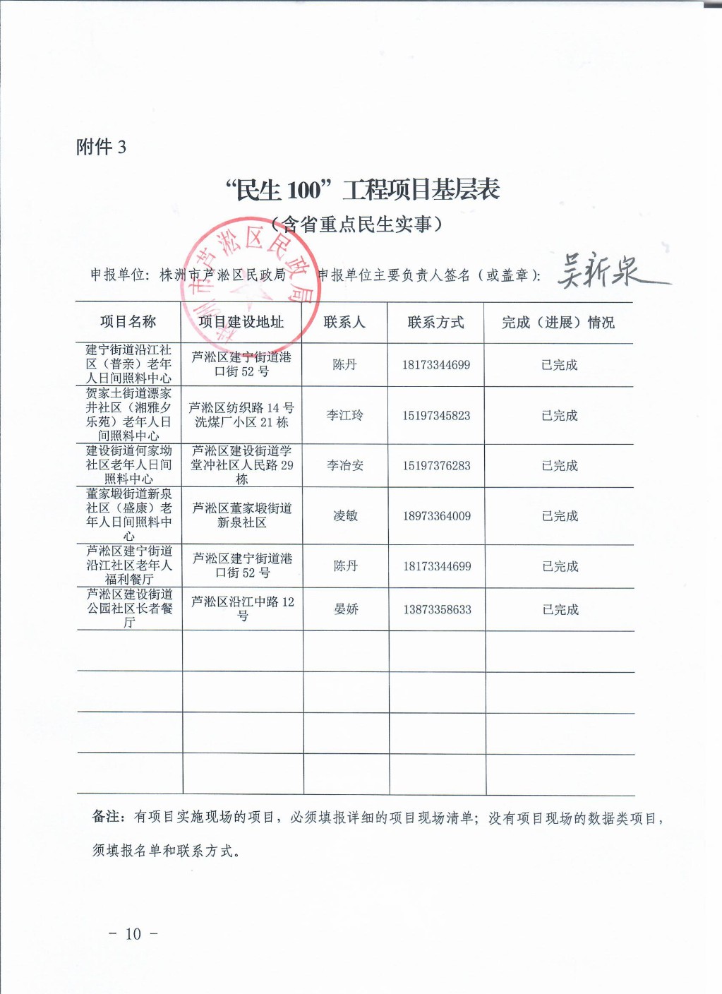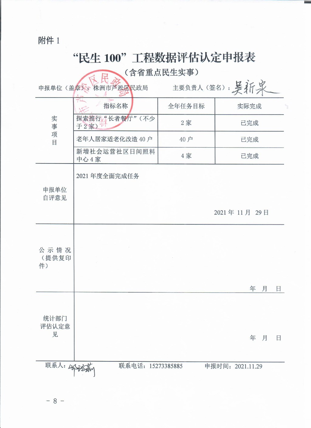 “民生100”工程数据评估认定申报公示(养老)