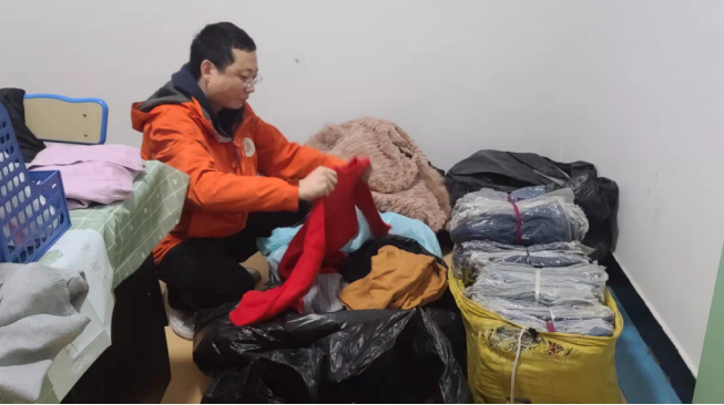 社工接收衣服以后,把衣服的尺码、款式分类整理,计划根据救助对象的穿衣需求,联合志愿者送到救助对象手中。